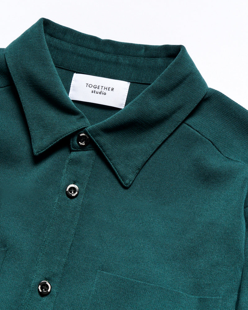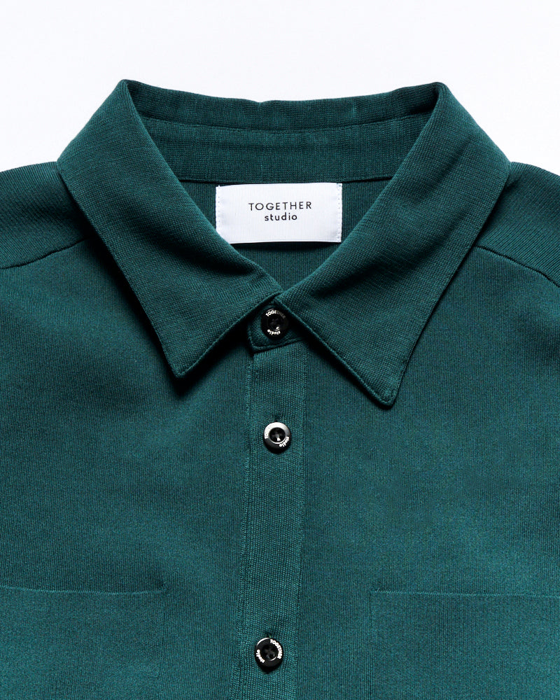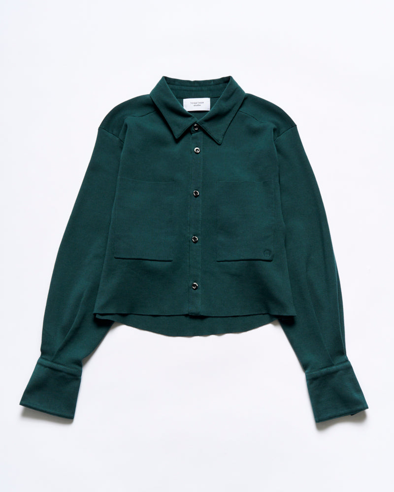 TOGETHER studioのアイコンであるニットシャツ「KNISHIR(ニッシャー)」。トレンド感のあるショート丈「KNISHIR THE MODERN」。